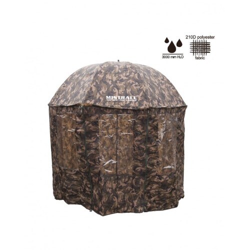 AM-6008907 Зонт рыболовный 2.5m CAMO MISTRALL(D-250 см) NEW! (с шалью на 8 секторов, 3 окошка) КАМУФЛЯЖ