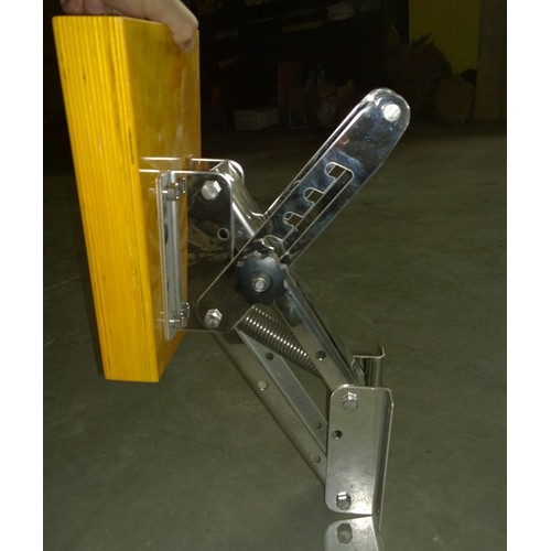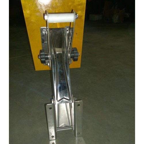 Имеет возвратную пружину, компенсирующую вес установленного двигателя. Транцевая доска изготовлена из дерева, остальные детали конструкции из анодизированного алюминия.