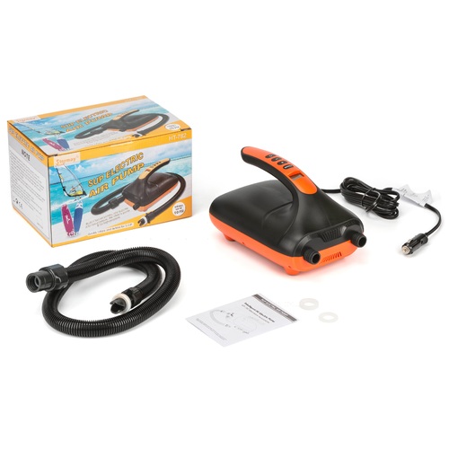 Автоматическое отключение на заданном уровне давления. Подходит для всех типов надувных лодок, в том числе НДНД и SUP досок. Работает от прикуривателя автомобиля.