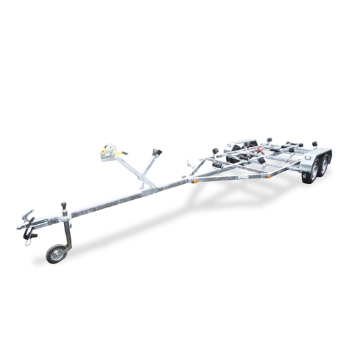 Прицеп двухосный, без тормозов. Подвеска колес (R13) на четырёх полуэллиптических рессорах с гидравлическими амортизаторами. Направляющие ролики (6 шт.) с регулируемым углом наклона. Прицеп снабжен специальной "качалкой", облегчающей погрузку и разгрузку плавательных средств на прицеп. Для обеспечения оптимальной нагрузки на сцепной шар подвеска может быть смещена вперед или назад в зависимости от положения центра тяжести перевозимого груза. Прицеп имеет съемный задний фартук, позволяющий исключить контакт светотехники с водой во время спуска и подъема лодки. Сцепное устройство шарового типа под шар D 50 мм. Полная масса 745 кг. Грузоподъёмность 358 кг. Фактическая до 800 кг. Габаритные размеры, мм - длина 6610; - ширина 2100; - высота 1160. Не требуется категория "Е".