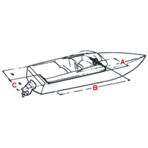 Если трос крепится с помощью специальных опор или кронштейнов к транцу или стенке моторной ниши, то длина троса определяется по формуле (А+В+С) - 0,1 м далее переводим метры в футы и определяем потребную длину.