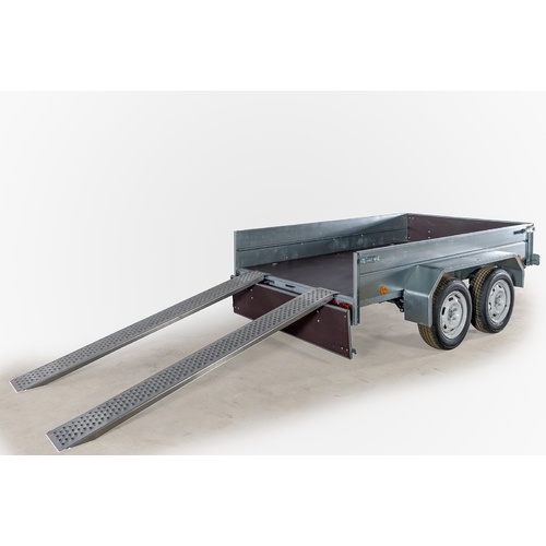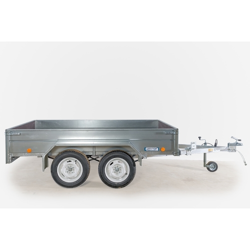 Прицеп двухосный, без тормозов. Передний и задний борта съемные.
