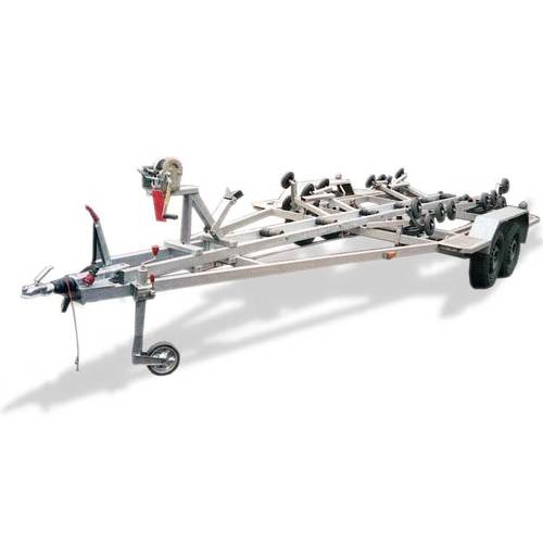 Оснащен 4мя домкратами с качающимися спаренными колесами для установки катера.