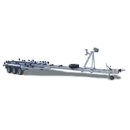 Оснащен 6-ю домкратами с качающимися спаренными колесами для установки катера.