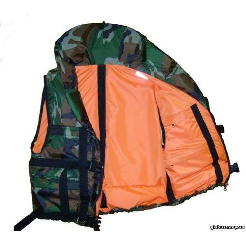 Рыболовный жилет " Капитан" -двухсторонний жилет, лицевая сторона комуфляж, внутренняя сторона- сигнального, ярко оранжевого цвета. На камуфляжной стороне имеютя 6 карманов на молнии, с оранжевой еще 4 кармана тоже на молнии. С оранжевой стороны на плечах имеются две светоотражающие полосы для наилучшего обнаружения человека в темное время суток, светоотражающие полосы имеют сертификат и остаются в рабочем состоянии при намокании в отличии от аналогов. Стропы и качественные пряжки надежно фиксируют спасжилет на теле человека.